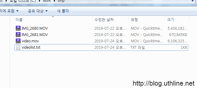아이폰으로 촬영한 여러 동영상을 하나로 합치고 싶을 때, 아래의 명령으로 간단하게 합칠 수 있습니다. 한번에 쭈욱 찍고 싶은데, 녹화 중에 전화가와서 끊어진 동영상들을 간단하게 이어보세요.