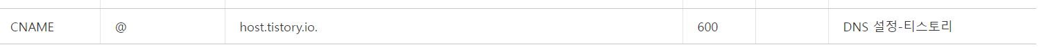 DNS 설정에 가보니, "host.tistory.io." 위치가 두개가 등록이 되어있었다. 서브 도메인이 www와 @ 이렇게 두개를 등록을 해놓은 것이다. 분명히 내가 등록했을 텐데, @를 왜 등록했는지 기억이 가물가물... 그래서 이놈을 한번 삭제 해보았다.